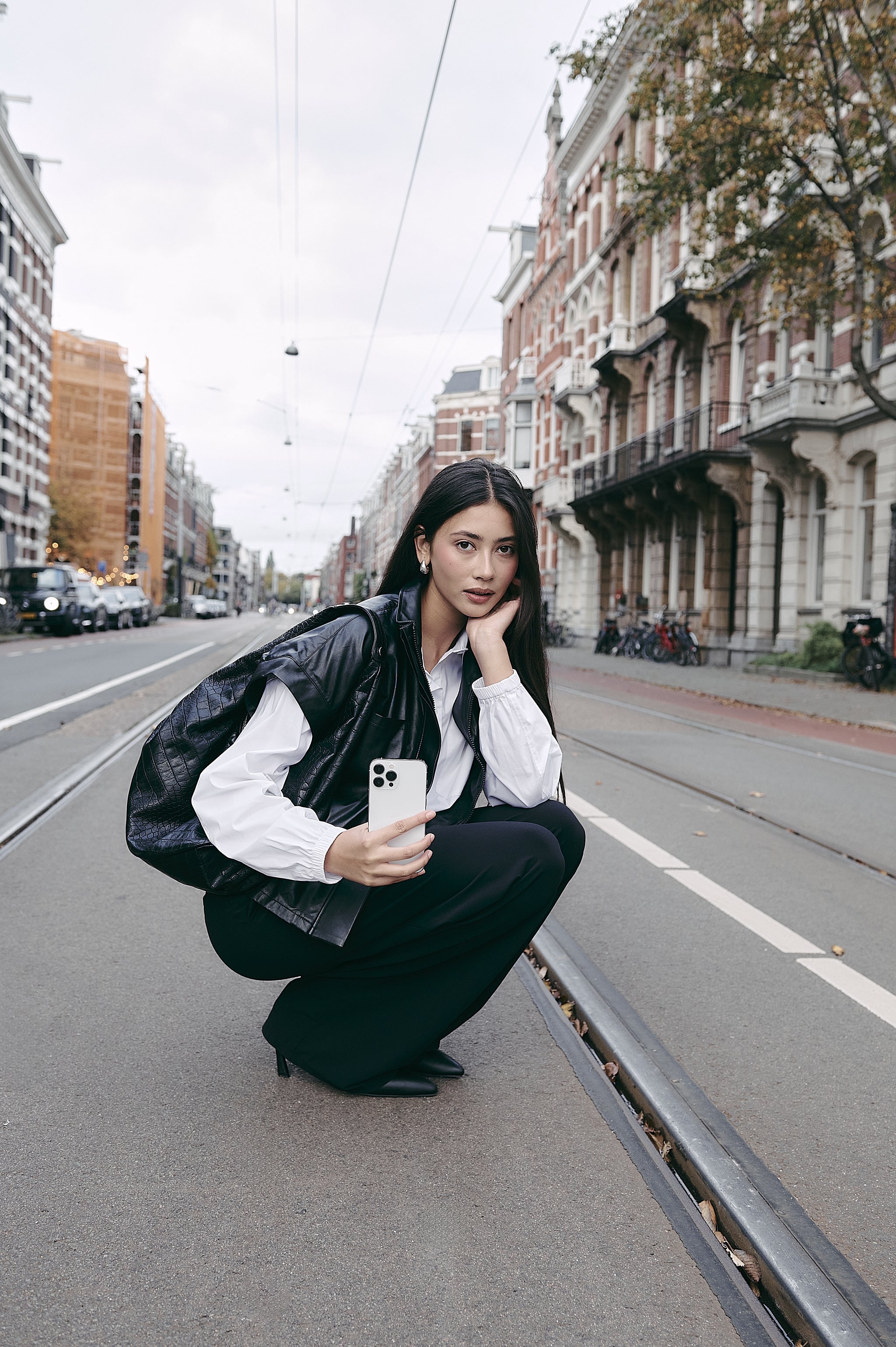 The Ian jacket (SU125105) is a sleek, cropped style made from Jane Lushka’s signature technical jersey. Designed with a clean stand collar and a hidden front placket, this jacket merges sport-inspired details with a tailored edge. The soft stretch fabric ensures comfort and easy movement, while the minimalistic silhouette keeps the look modern and versatile — ideal for layering over both casual and polished outfits.