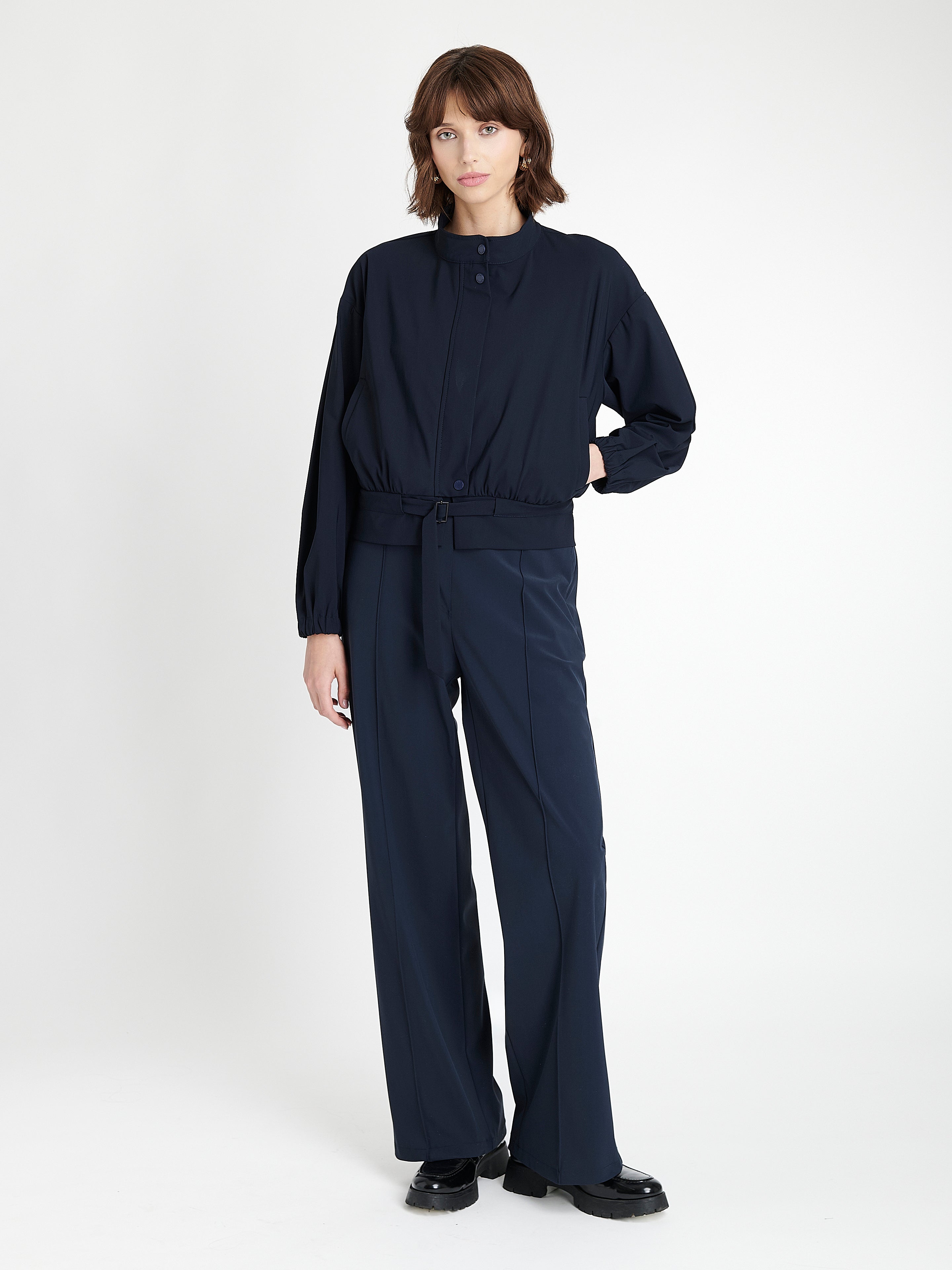 The Ian jacket (SU125105) is a sleek, cropped style made from Jane Lushka’s signature technical jersey. Designed with a clean stand collar and a hidden front placket, this jacket merges sport-inspired details with a tailored edge. The soft stretch fabric ensures comfort and easy movement, while the minimalistic silhouette keeps the look modern and versatile — ideal for layering over both casual and polished outfits.