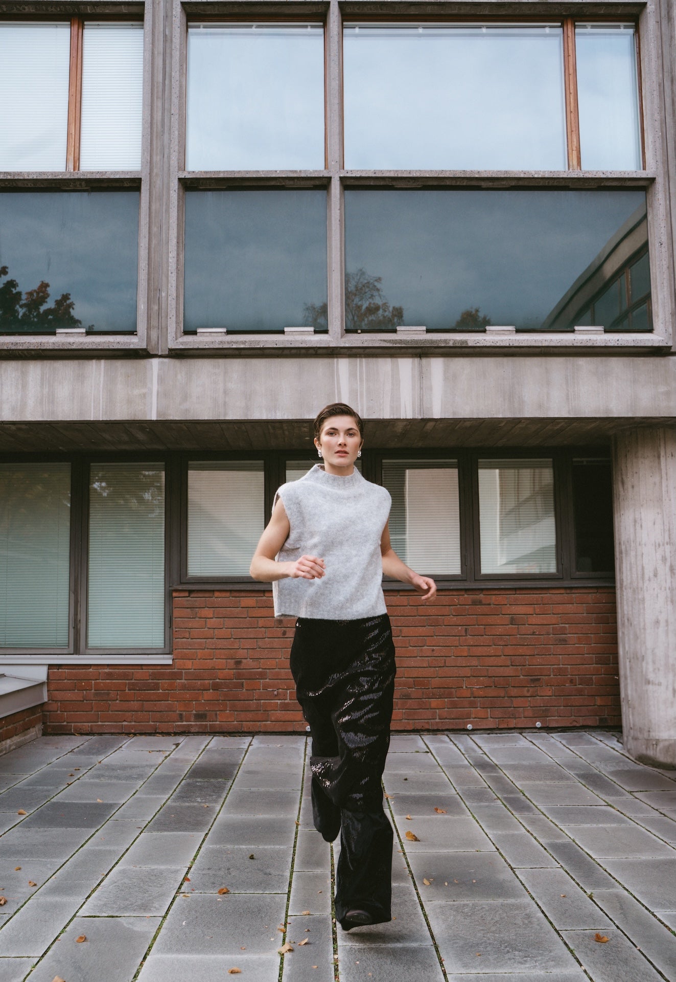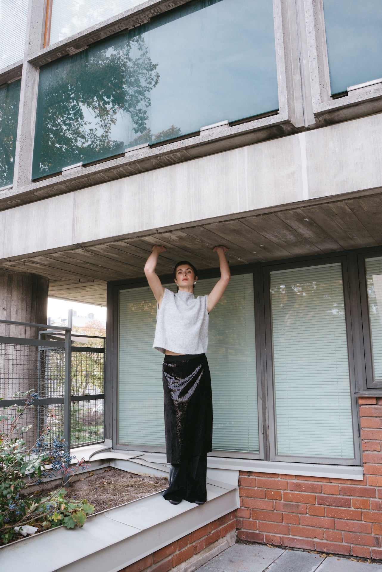 Add a sparkle to your step with the Pallina sequins skirt. This dazzling piece combines a sleek silhouette with high-shine sequins for a look that's effortlessly elegant. Crafted from recycled materials, it’s a conscious choice for evening glamour. Designed in a flattering midi length, it pairs beautifully with its matching top or any simple knit.
