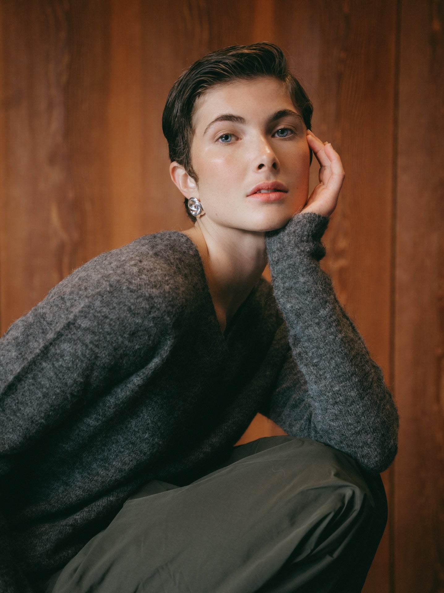 • Crafted in a refined grey melange tone