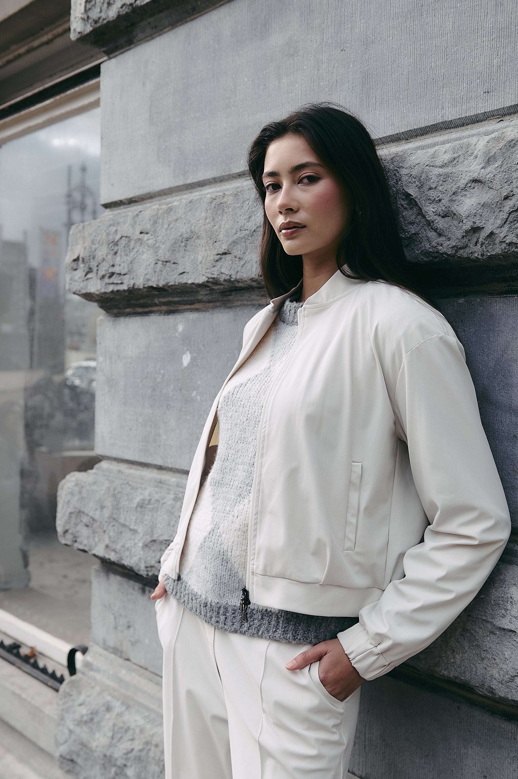 The Sharon jacket (UFC125146) is a sleek essential with an athletic touch. Made from brushed technical jersey, it features a soft, slightly velvety surface that feels luxurious yet functional. The minimal collar, full-zip front, and elasticated cuffs and hem bring a clean, modern silhouette that's easy to wear and easy to style. Whether paired with matching pants or layered over a dress, Sharon adds effortless edge.