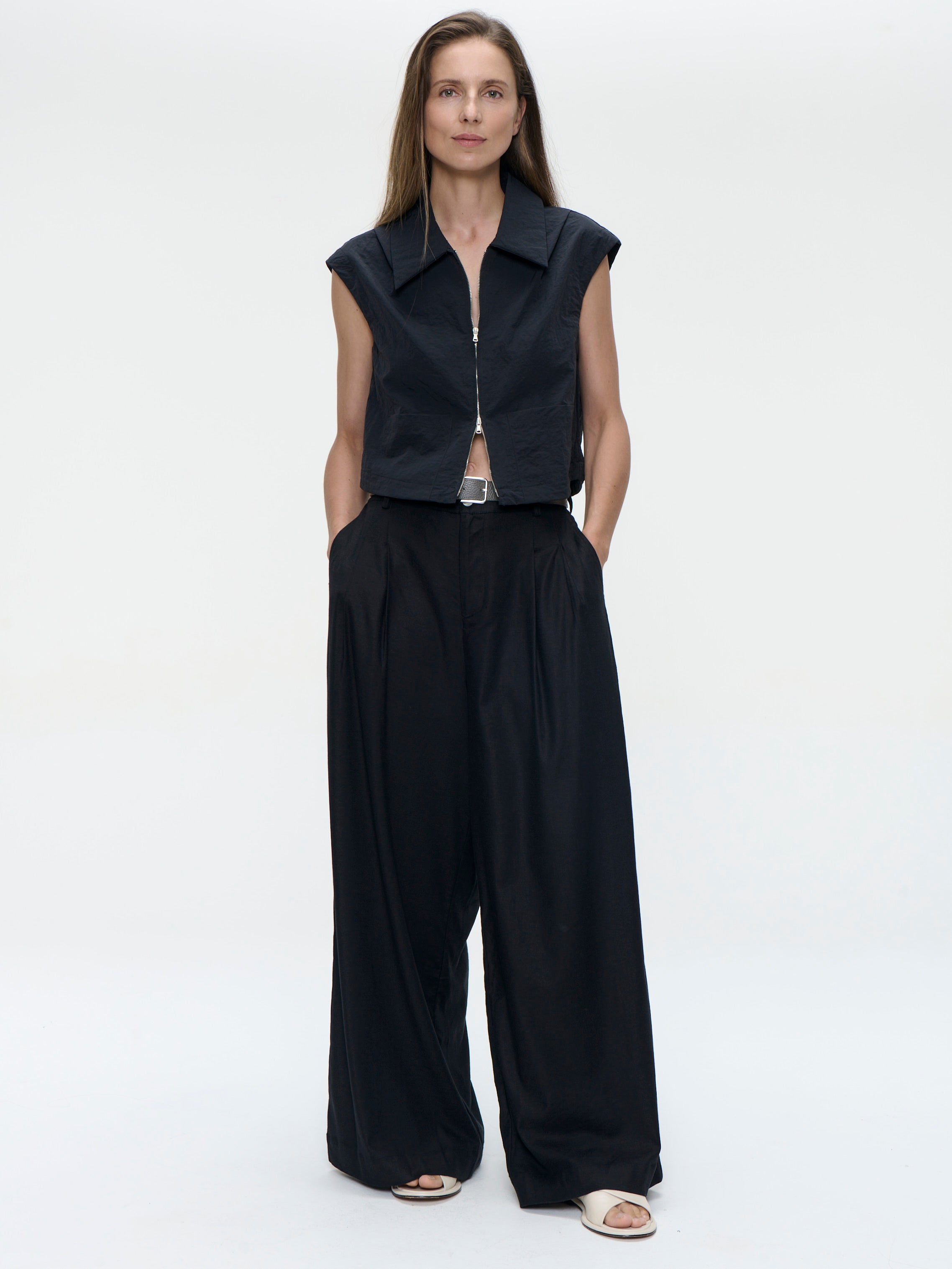 • Cropped sleeveless jacket