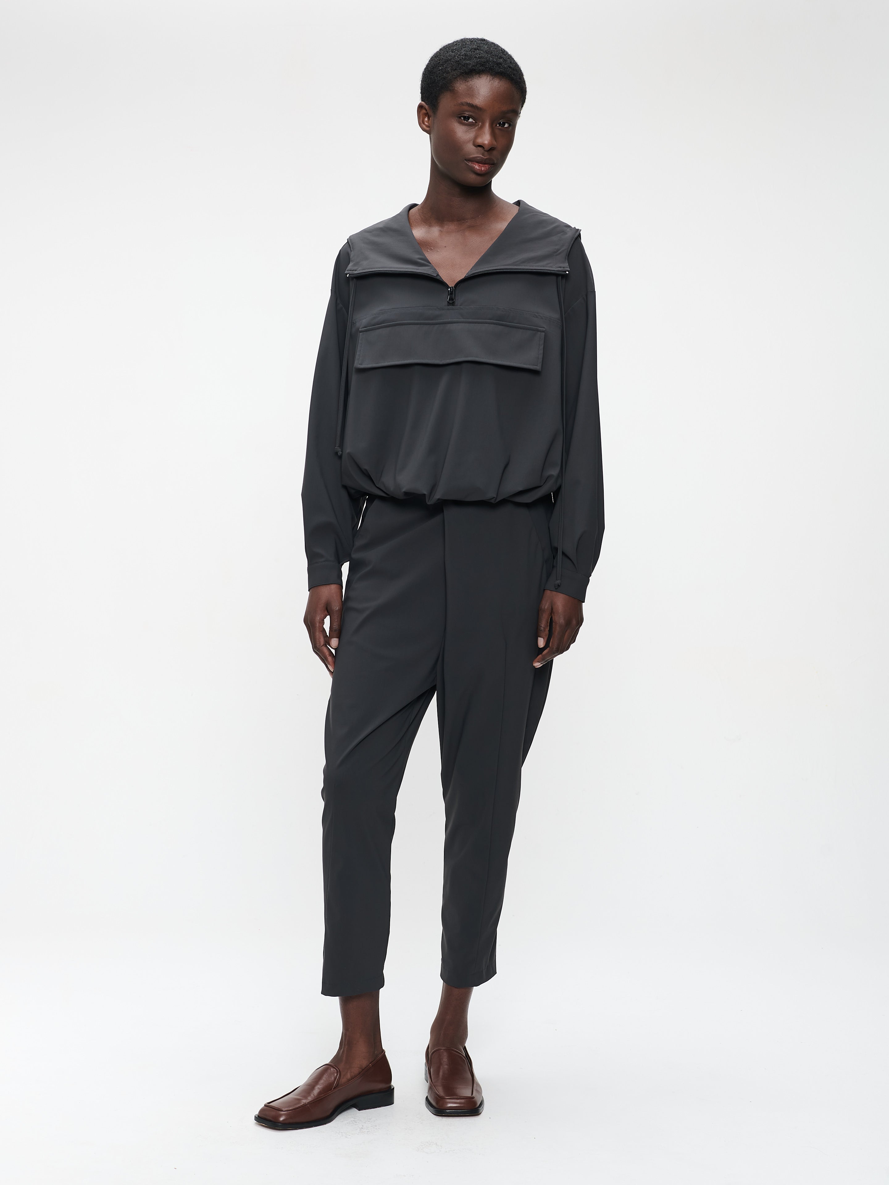Simple yet smart, the Maren top redefines sporty elegance with its clean silhouette and functional details. Crafted from technical jersey for flexibility and comfort, this piece features a high collar with hood and raglan sleeves that provide ease of movement. Perfect for active days or laid-back looks with a refined edge.