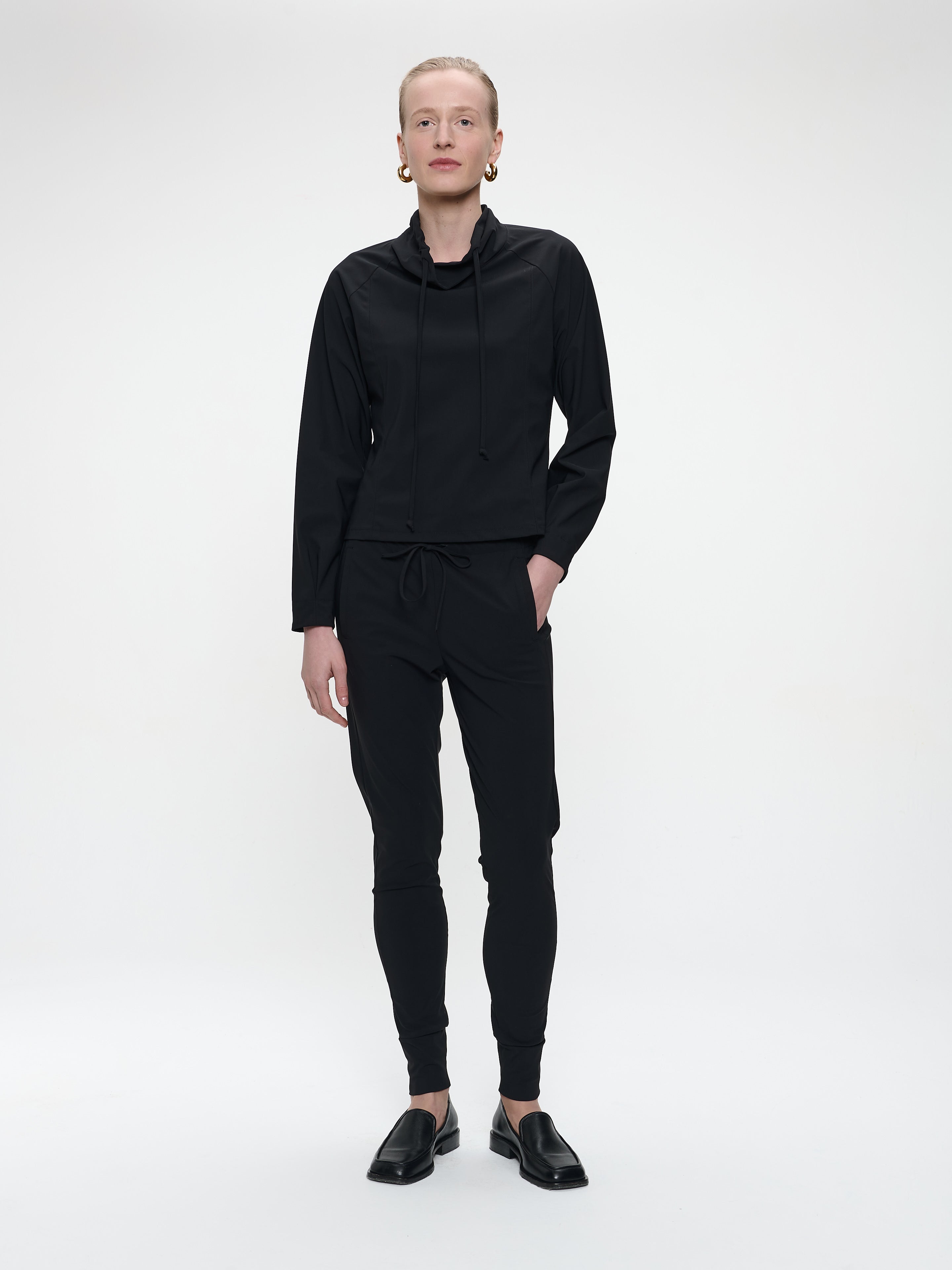Simple yet smart, the Maren top redefines sporty elegance with its clean silhouette and functional details. Crafted from technical jersey for flexibility and comfort, this piece features a high collar with hood and raglan sleeves that provide ease of movement. Perfect for active days or laid-back looks with a refined edge.