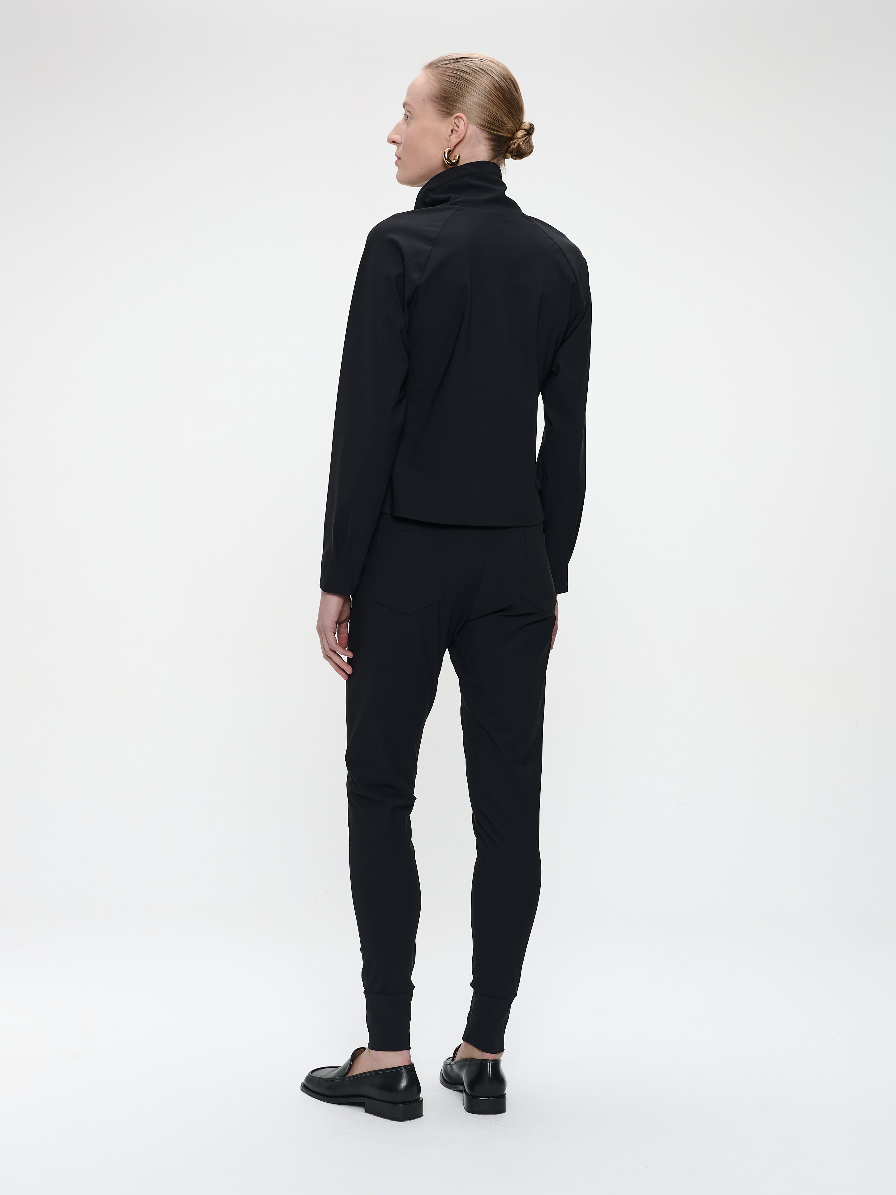 Minimalist and versatile, the Hilary top is a wardrobe essential that brings comfort and modern elegance. Made from soft brushed technical jersey, it offers a clean silhouette with a touch of sophistication. The high collar and fitted shape make it ideal for layering or wearing solo on cooler days.
