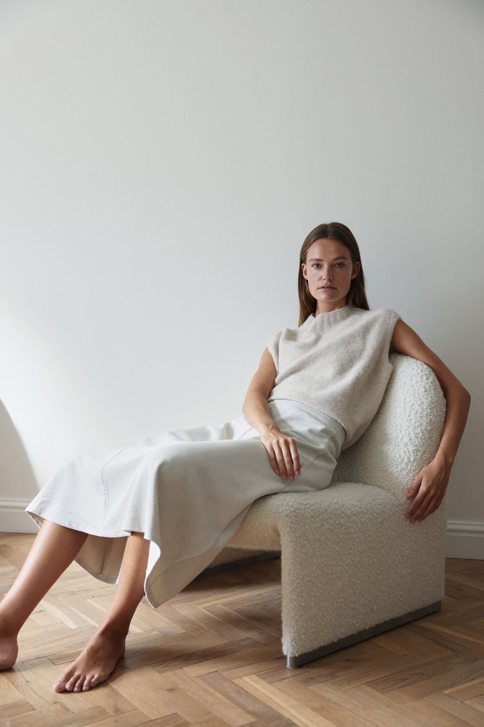 Alpaca Vest H24179 is the perfect layering piece for transitional weather. Crafted from a luxurious alpaca blend, this sleeveless knit offers softness and structure in equal measure. The high neckline and relaxed fit make it ideal over shirts, dresses, or lightweight tops for a refined and comfortable look.