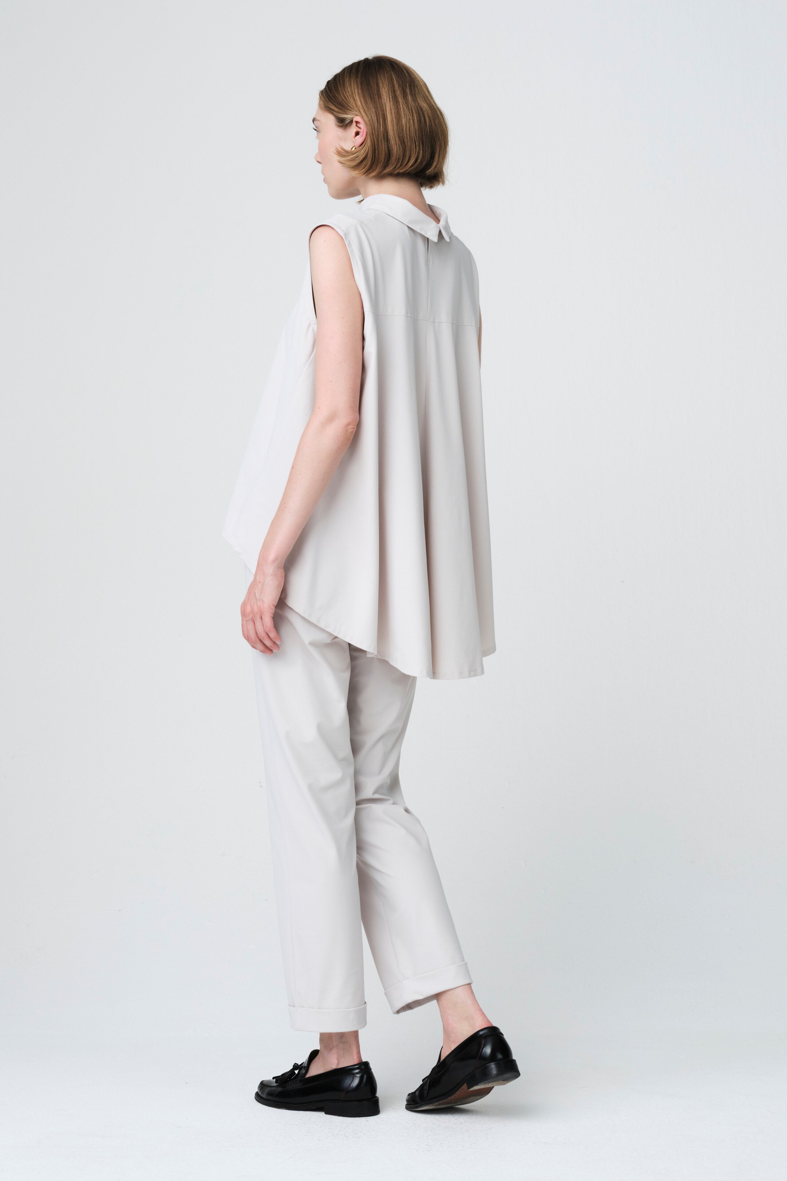 The IrenaN Pants bring a clean, modern silhouette with a softly structured feel. Crafted from our signature technical jersey, they offer a refined look with effortless comfort. The regular fit, tapered leg and subtle structure make them ideal for both everyday wear and more polished styling. The folded hem adds a contemporary touch, while the smooth fabric ensures ease of movement throughout the day.